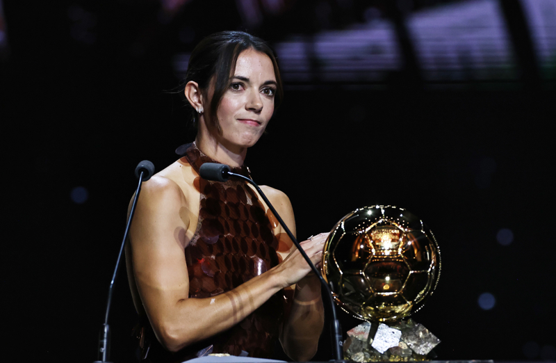 巴塞罗那队西班牙球员邦马蒂在颁奖仪式上。她获颁女足金球奖,这是她连续第三年获得该奖项