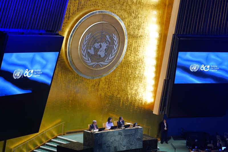 位于纽约的联合国总部拍摄的纪念联合国成立80周年高级别会议现场
